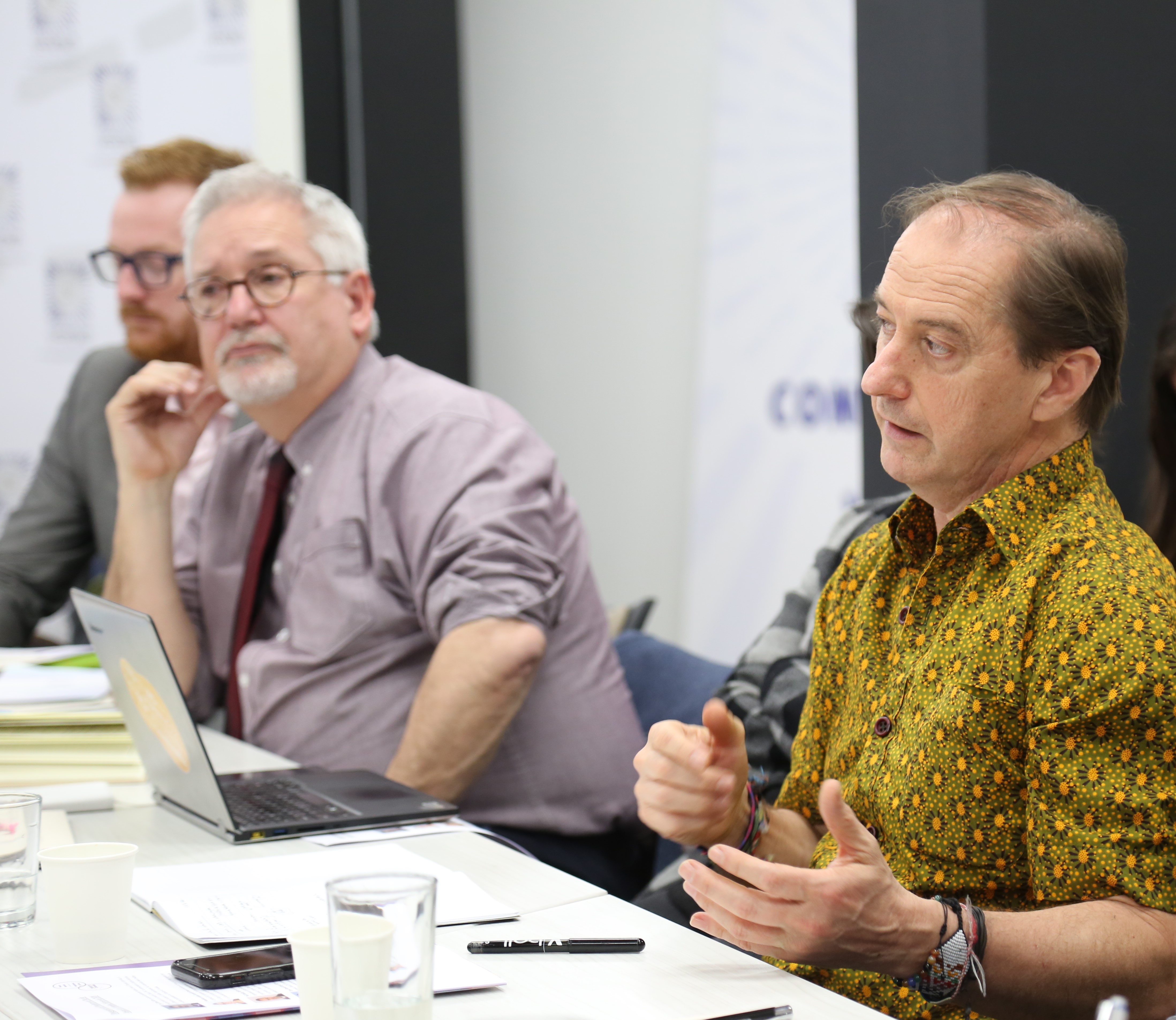 With Clive Efford MP (Labour Party), Lloyd Russell-Moyle MP (Labour Party), Neil Findlay MSP (Labour Party), Senator Adelina Escandell (ERC, Catalonia/Spain), Sergio Bassoli (Political Officer, CGIL – Italy), Josie Bird (President, UNISON), Douglas Chalmers (President, UCU), Dave Kitchen (President, NASUWT), Margaret McKee (Chair of International Committee, UNISON), Gerry Murphy (President, ICTU), Susan Quinn (Education Convener, EIS), and Hans Sørensen (Regional President, 3F – Denmark).